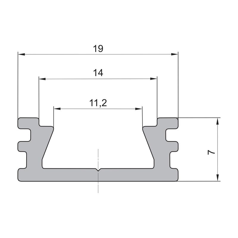 • hliníkový profil 19mm x 7,5mm pre LED pásy