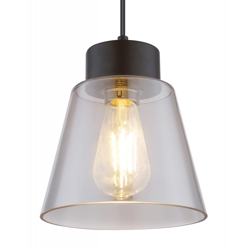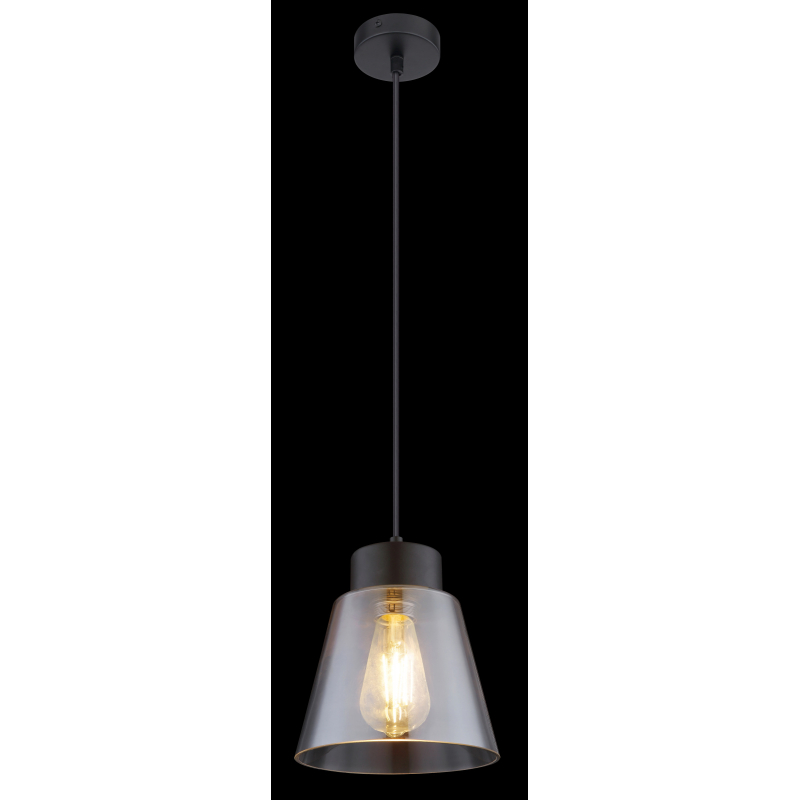 Závesné svietidlo, kov čierny, dymové sklo, Ø190, V:1200, bez žiarovky 1xE27, max. 60W 230V