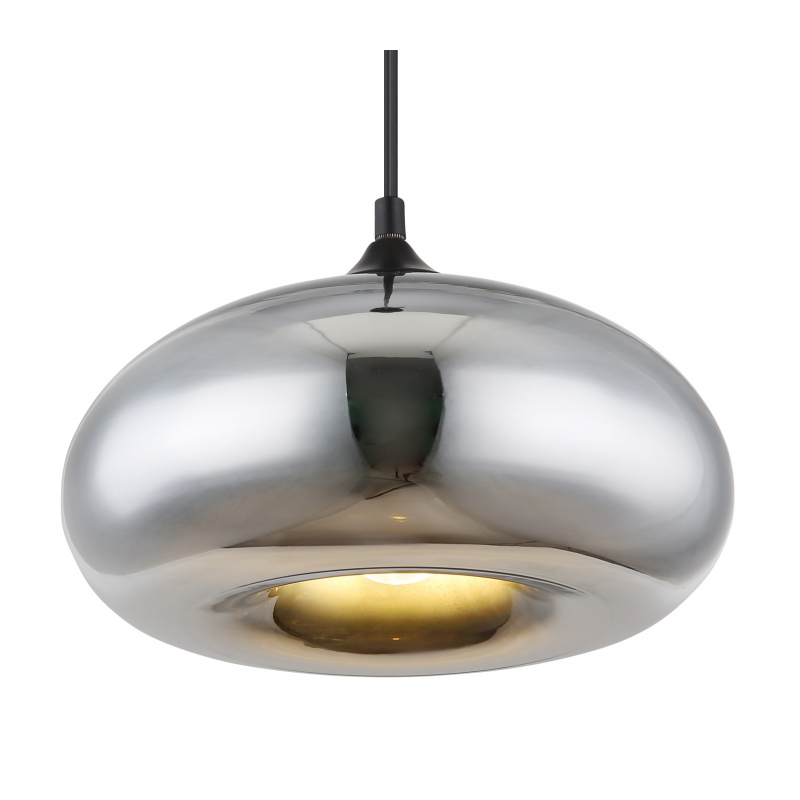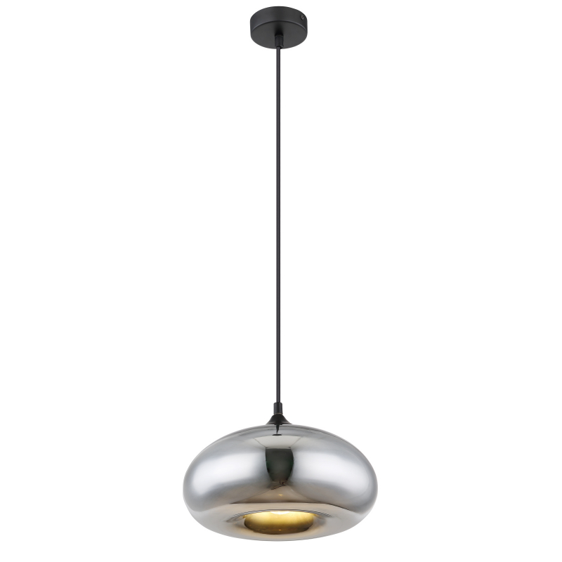 Závesné svietidlo, kov čierny, sklo chrómovej farby, Ø280, V:1200, bez žiarovky 1xE27, max. 60W 230V