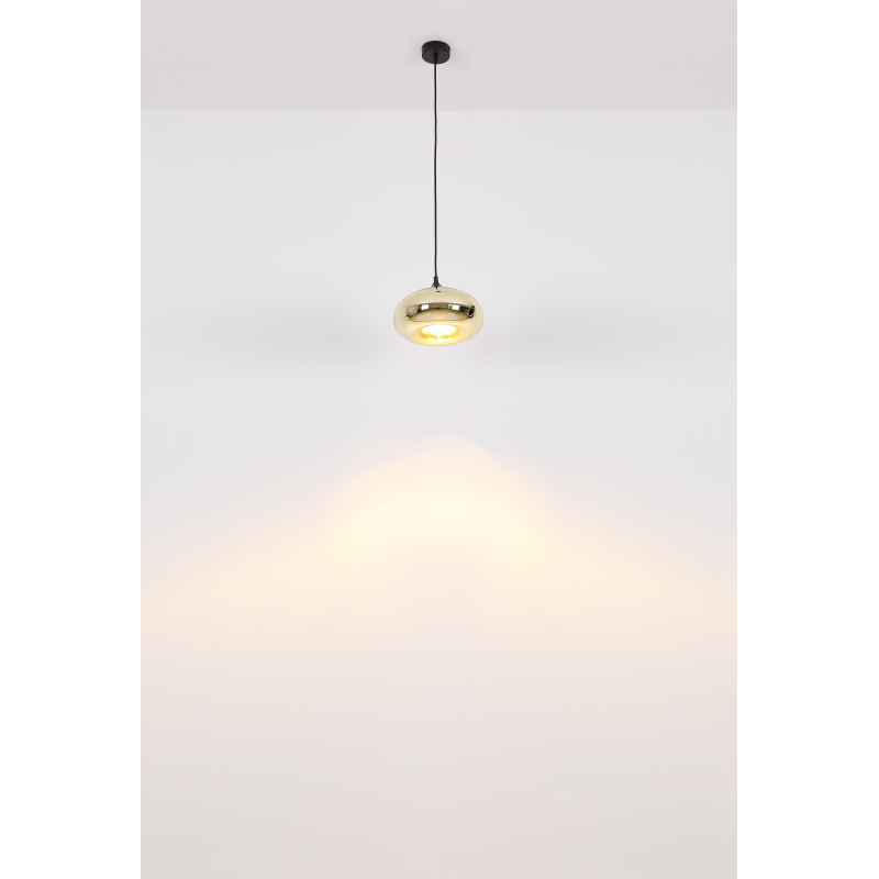 Závesné svietidlo zo série Selly (ø 28 cm) sa nádherne hodí do vášho interiéru. Skladá sa zo skleneného tienidla chrómovej farby, ktoré visí zo stropu na čiernom kábli. Výška svietidla je nastaviteľná maximálne na 1,2 m. S objímkou E27 máte možnosť určiť si zdroj svetla, tým aj farbu a intenzitu svetla. Vzhľadom na jej životnosť odporúčame LED žiarovku. S ďalšími svietidlami tej istej modelovej série môžete doplniť vzhľad vášho interiéru.