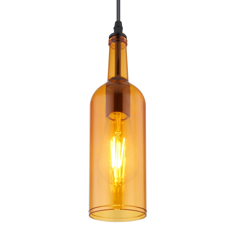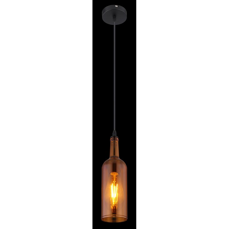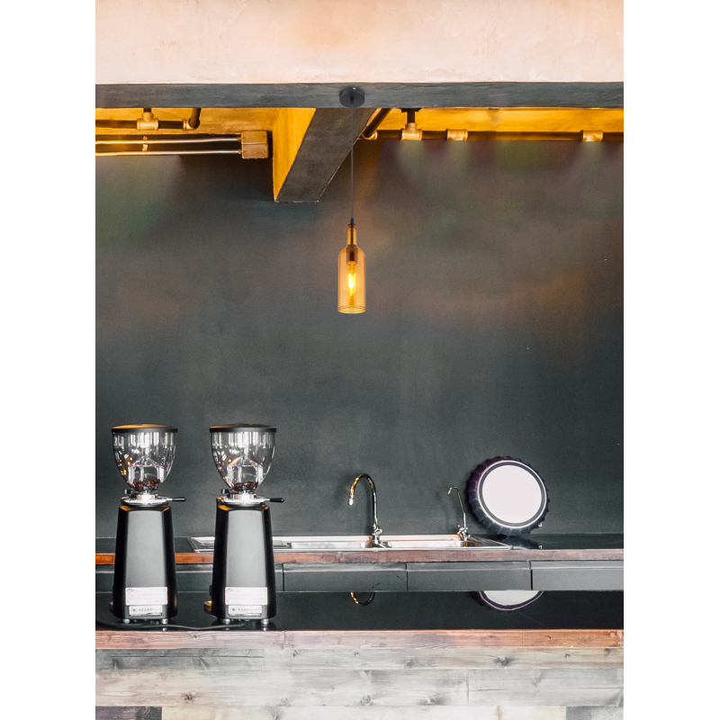 Závesné svietidlo, kov čierny, akryl, jantárová fľaša, Ø 100, V: 1070, bez žiarovky 1xE27 LED, max. 8W 230V