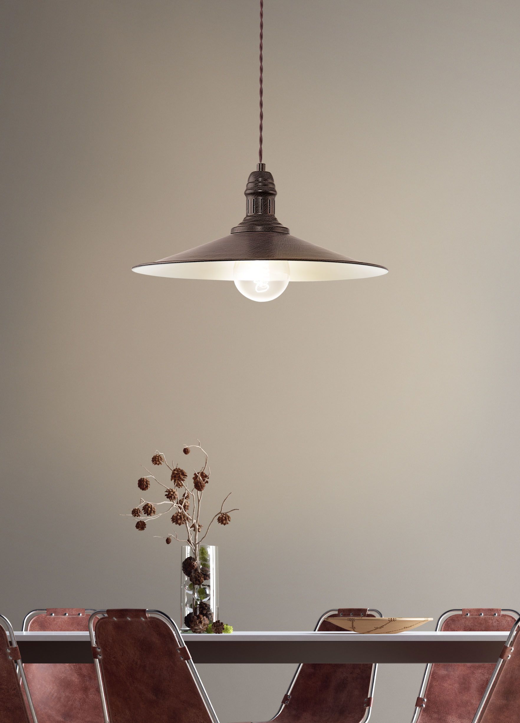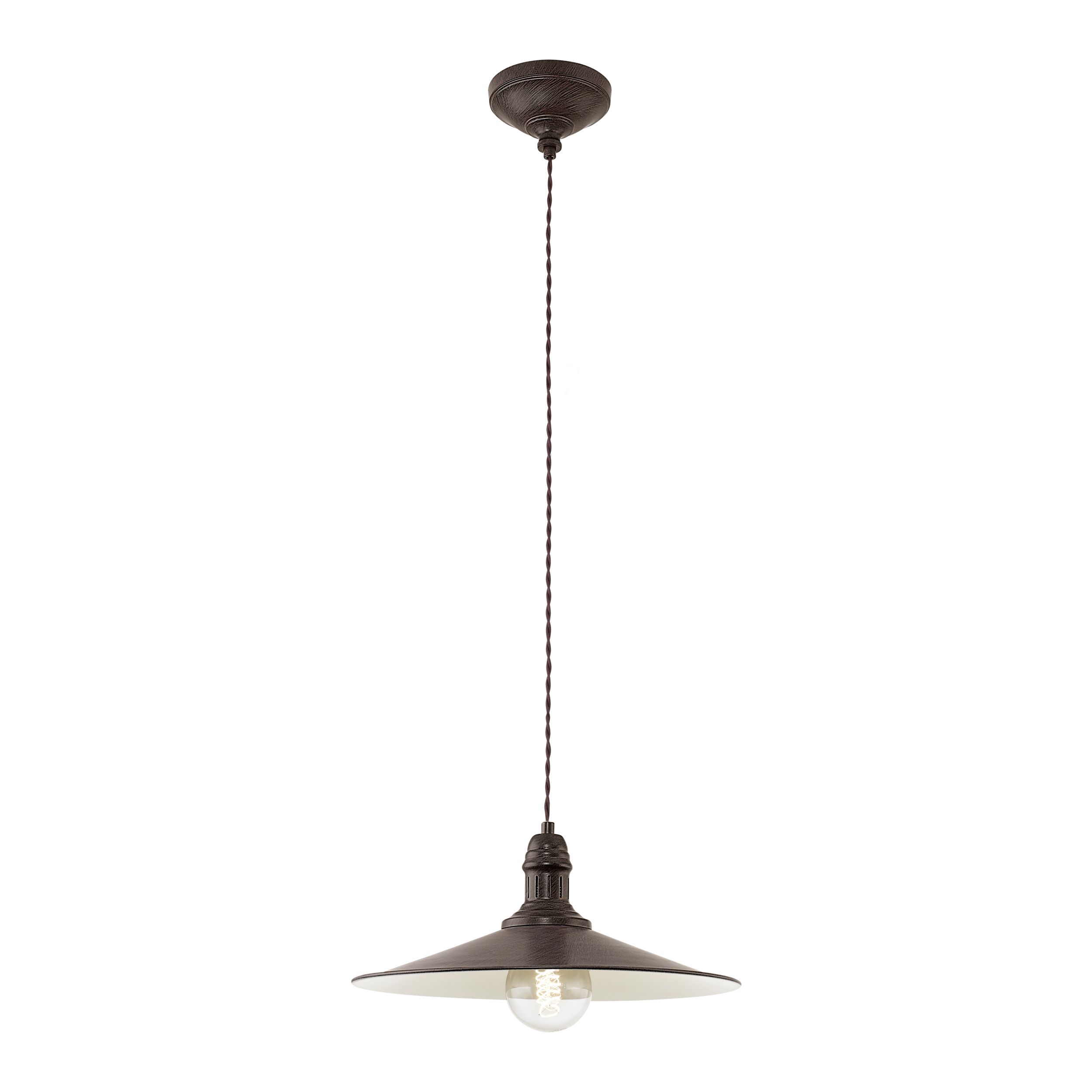 Závesné svietidlo STOCKBURY, antická hnedá, béžová, hnedý textilný kábel, Ø 360, V: 1500, bez žiarovky 1xE27, max. 60W 230V